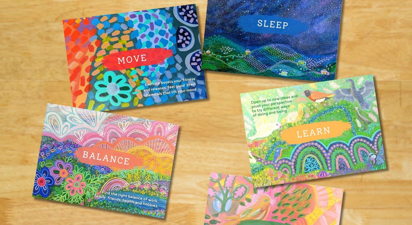 Original artwork is the backdrop for beautifully designed resources that are gently grounded in best practice counselling and wellbeing principles.