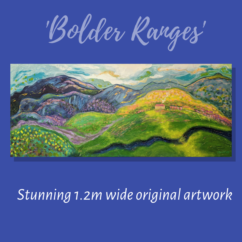 Bolder Ranges is a mixed media artwork on stretched double thick canvas ready to hang. 120cm x 50cm. Perfect over a buffet or bed, or on a long wall. If you love it then you will know where it belongs.