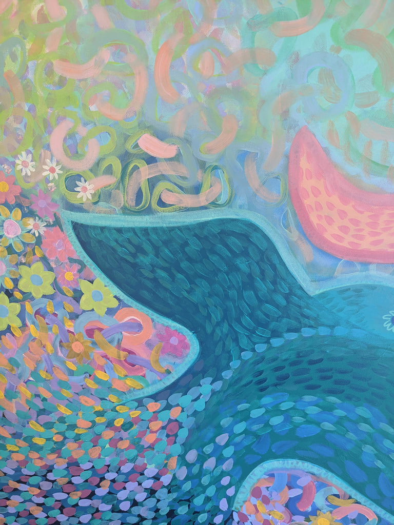 This artwork in contemporary colours celebrates the joy of being in harmony with others.