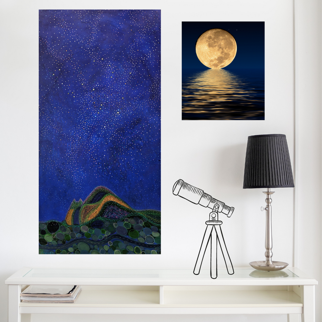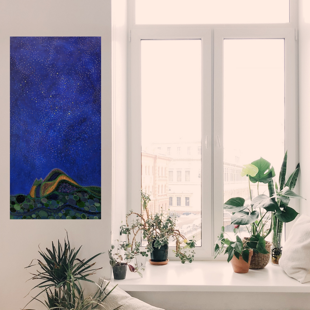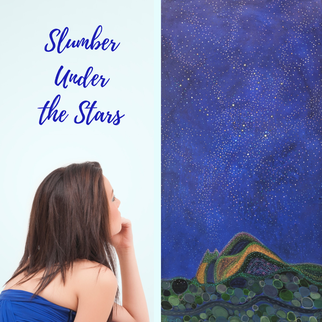 Slumber Under the Stars is the latest painting in my 'starscapes' series that celebrate the celestial beauty of the night sky in rural Australia. Constellations are studded in the starry sky.